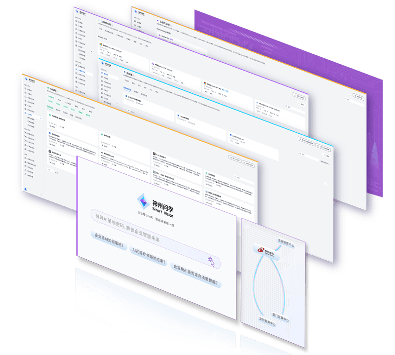 打通GenAI落地企业的算力、、、、模型、、、、知识、、、应用四大要素,,,综合解决GenAI工程在选、、、、练、、、、用、、、、管四大环节的问题,,,,旨在为企业的数智化转型提供全套的GenAI智能应用工程流水线。。。。78m威九国际问学包括模型算力管理平台、、、、企业私域知识管理平台、、AI应用工程平台三大模块,,,为企业提供更先进、、、更匹配的大模型,,解决了算力上信创适配、、、、融合调度、、、企业私域大模型高效推理训练问题,,,同时解决了数据到知识的向量化以及场景应用的轻量化组装问题。。